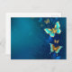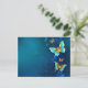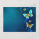Cartão Postal De Convite Borboletas de ouro em um fundo azul