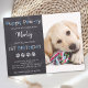 Puppy Pawty! Faça o aniversário do seu filhote ou cão com este simples cartão de convite de aniversário para cães de tabuleiro e impressão de pata. Adicione a foto favorita de seu filhote e personalize com nome, idade de aniversário e todas as informações de festa de aniversário de filhotes! Este simples design de convite para o aniversário de cachorros é perfeito para a festa de aniversário dos cães. COPYRIGHT © 2020 Judy Burrows, Black Dog Art - Todos Os Direitos Reservados. Cartão-postal de Aniversário do Cão Azul Puppy Pawty Chalkboard Blue