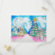 Este cartão postal de Natal ou de férias de inverno pode ser usado como um convite de festa ou cartão de felicitações. Eu projetei este cartão usando minha pintura original de aquarela e caneta hidrográfica que eu fiz para meu chefe. Estou muito orgulhosa de como ficou. Eu desenhei à mão livre os designs dos cães olhando fotos de pug porque meu chefe tem pugs e eu queria criar uma pintura só para ela. A cor favorita dela é rosa, e é por isso que as luzes na árvore são todas rosas. Às vezes, a neve parece rosa, então eu acabei usando rosa para as sombras. Eu meio que deixei o céu se projetar sozinho, inundando o fundo com água e pingando um pouco de tinta azul. Eu amo estrelas e desenhos de estrelas, então estou muito feliz com como as estrelas de cinco pontas no fundo fazem a estrela da Natividade de