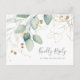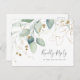 Este cartão postal de RSVP, pedido de música de ouro e verde é perfeito para um casamento moderno. O elegante design botânico apresenta uma aquarela clara e arejada, eucalipto, acentuado com folhas de brilho de ouro branco. Crie sua lista de convidados de casamento e sua lista de músicas de dança de uma só vez! Este cartão de resposta do casamento convenientemente pergunta aos hóspedes se eles serão capazes de ir ao seu casamento, e também que música os fará dançar.