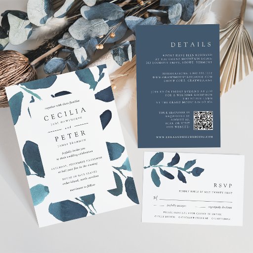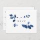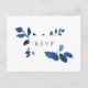 Cartão postal de RSVP botânico de cobalto azul e branco com cor d'água com seleção de refeições ou entradas. Projetado para combinar com nossa coleção de casamento Botânico Pressionado em Indigo.