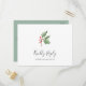 Este cartão postal de RSVP de Natal é perfeito para um casamento de dezembro. O design de férias de inverno apresenta um galho verde-aquoso de cor verde-úmida com ranhuras de groselhas vermelhas clássicas. Crie sua lista de convidados de casamento e sua lista de músicas de dança de uma só vez! Este cartão de resposta do casamento convenientemente pergunta aos hóspedes se eles serão capazes de ir ao seu casamento, e também que música os fará dançar.