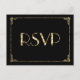 Excelente de folha de ouro Gatsby Art Deco casamento RSVP cartões postais com texto personalizável impresso em fundo preto
