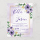 Cartão-postal bonito de casamento do Quadro Dourado Floral Branco e Púrpura. O design tem um belo fundo floral branco roxo e um quadro de ouro com os detalhes do casamento escritos como fonte bonito. Mande um convite para a família e os amigos. Esses belos convites podem ser totalmente personalizados mudando os nomes da Noiva e do Cavalo, da Data do casamento e dos detalhes do casamento. Para mais personalização, entre em contato comigo em mypaperlove2021@gmail.com