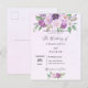 Cartão Postal De Convite Casamento com flores violetas rosas verdes