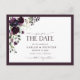 Crie o casamento perfeito Salve o cartão de Data com este design bonito e moderno, com um motivo floral roxo de ameixa d'água, e tipografia de script com letra de mão. Entre em contato com o designer para produtos correspondentes. Copyright Elegant Invites, todos os direitos reservados.