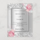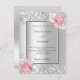 Fundo de aspecto fino prateado decorado com flores brancas e cor-de-rosa, flores e brilho fino prateado, brilhos. Personalize e adicione seus nomes e detalhes do casamento. Letras negras.