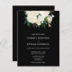Convite de casamento elegante apresenta uma disposição de flores brancas e folhagens. Por favor, é um POSTAL de convite, não inclui envelopes.