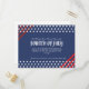Convide seus entes queridos para uma festa de 4 de julho festiva com este cartão de convite impressionante. O design apresenta um fundo azul marinho em negrito com faixas vermelhas formando um design triangular nos cantos superior direito e inferior esquerdo. Três linhas de estrelas brancas adornam o topo e o fundo, criando um poderoso design inspirado pela bandeira americana. A peça central pode ser personalizada com os detalhes do seu partido, convidando convidados a honrar as liberdades que apreciamos enquanto aproveitamos a folia do Dia da Independência. #StarSpangledFreedomParty #NavyBlueInvite #RedStripedDesign #WhiteStarAccents #CustomizableInvitation #PatrioticCelebration