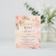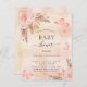 Para um chá de bebê estilo boho moderno. Um fundo com aparência metálica falsa rústica em rosa dourado e rosa. Decorado com flores cor-de-rosa e douradas, rosas, capim-pampas e borboletas. Personalize e adicione um nome e detalhes da festa.