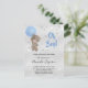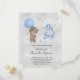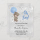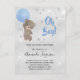Para um chá de fraldas celebrando um menino. Um fundo metálico falso prateado. Um ursinho de pelúcia segurando estrelas de balões azuis e poeira brilhante fraca. Personalize e adicione o nome da mãe a ser e os detalhes da festa. O nome e o texto: Oh Boy! são escritos com um estilo escrito à mão. Fundo: prata, design postal. Dica: Se você não quiser que pareça um cartão postal, clique em personalizar, vá para o verso e remova o divisor e o carimbo de posto.