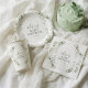 O convite ao chá de fraldas postal apresenta verde e uma caligrafia cardíaca fofa.