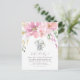 Cartão Postal De Convite Chá de fraldas de Elefante Floral Rosa Elegante