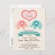 Cartão Postal De Convite Chá de fraldas de Elefantes Rosa e Teto Gêmeos
