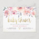 Cartão Postal De Convite Chá de fraldas de Script Dourado Chic Rosas de Aqu