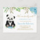 Belo e adorável verde floral azul, eucalipto, folhagem botânica, folhas verdes salgadas de água, folha de ouro, urso panda bebê, podemos esperar! É um convite para chás de fraldas. Você pode personalizar este doce convite com seu próprio texto.