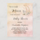Para um chá de fraldas moderno estilo boho. Um fundo rosa dourado, rosado, rosado e roxo, com aspecto metálico. Decorado com uma lua, flores e eucalipto verde. Personalize e adicione um nome e detalhes da parte.