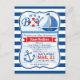 Cartão Postal De Convite Chá de fraldas Náutico; Bandas Azuis e Brancas