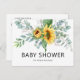 Cartão Postal De Convite Chá de fraldas Rustic Sunflower Eucalyptus Greener
