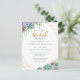 Cartão Postal De Convite Chá de panela de Script Dourado e Sucultos Botânic