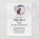 Convites de chuva de bebê com uma pintura em aquarela de um gato preto e um buquê floral lilás e rosa. De pé diante de uma grande lua cheia. Elegante e mágico.