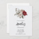 Cartão Postal De Convite Cinza Vermelha e Buquê de Flor Cream Boho Aniversá