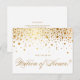 Peça aos seus amigos e familiares para fazerem parte do seu casamento com este cartão simples e elegante "Você Quer Ser Minha Dama de Honra". Este cartão de casamento moderno apresenta pontos de confeite folheado dourado falso com escrita elegante. Itens correspondentes estão disponíveis.