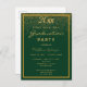 Um convite moderno e na moda para uma festa de formatura. Para ele e para ela. Um clássico fundo verde e chuva confete de ouro. Com uma falsa armação de ouro. Modelo para detalhes de nome e festa. O texto Graduação e o nome são escritos com um script de estilo manuscrito moderno. Ouros.