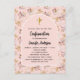 Um quadro de arco sobre um padrão de grama pampas e flores cor-de-rosa e uma cruz ouro. Personalize e adicione um nome e detalhes.