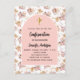 Um quadro de arco sobre um padrão de grama pampas e flores cor-de-rosa e uma cruz ouro. Personalize e adicione um nome e detalhes.