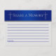 Deixe estes onde seus convidados possam escrever uma memória especial sobre o falecido. Em acabamentos prateados e azuis, isso combina com a coleção memorial Cruz Cristã Azul, de modo que estes cartões de memória combinarão lindamente com nossos sinais, convites e livro de visitas.