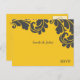 Cartão Postal De Convite Damask Yellow e RSVP de Casamento de Cinzas