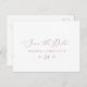 Esta delicada horizontal de ouro rosa, que salva o cartão postal é perfeito para um casamento moderno. A design romântica minimalista apresenta uma magnífica e elegante tipografia cor-de-rosa rosa, empoeirada, num fundo branco, com um aspecto simples e limpo.
