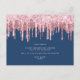 Este design de convite moderno apresenta cor-de-rosa-claro, brilho dourado, fundo azul-marinho e letra elegante de caligrafia.