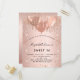 Para um doce elegante 16, 16 anos. Um fundo de aparência metálica falsa rosa dourado. Decorado com rosa dourado, brilho rosado, aspecto de pingar tinta e balões. Personalize e adicione um nome, idade e detalhes da festa. O nome é escrito com um script de estilo manuscrito