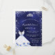 Um convite moderno, na moda e glamouroso para uma doce festa de aniversário 16, 16. Um fundo azul da meia-noite com pó falso prateado, tiara e vestido. A cor azul é irregular. O nome é escrito com um moderno estilo escrito à mão. Personalize e adicione os detalhes da sua festa.