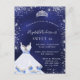 Cartão Postal De Convite Doce 16 vestido azul de brilho prateado tiara glam
