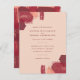 Se você ama abstrato com um toque elegante, este é o convite certo para você. Apresentando pincéis de parelha em merlot, cor vermelha e rosa pessegueira contra fundo pastel de crème de pêche com pó de folha de ouro cúbica. Seus detalhes de casamento são mostrados em uma tipografia minimalista na moda. Este esquema de cores é perfeito para um romântico casamento de outono.