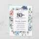 Cartão Postal De Convite Dusty Blue Floral 80 Birthday
