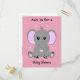 Cartão Postal De Convite Elefante de bebê bonito, rosa, chá de fraldas