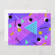 Cartão Postal De Convite Estilo Retro Memphis Roxo Azul dos Anos 80