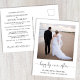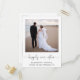 Anúncio de casamento elegante e sofisticado para fuga ou casamento menor, ou cartão postal de convite para recepção ou festa após o casamento. A frente apresenta sua fotografia, "felizes para sempre" escrito em uma fonte estilosa com floreios e seus primeiros nomes, data e local do casamento. No verso, você pode personalizar o anúncio do casamento com mais detalhes, adicionar um convite para recepção ou festa e assinar seus nomes de casados em uma fonte com estilo de assinatura.