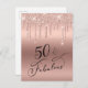 O convite para cartão postal Elegante e chic 50th festa de aniversário com "50 & Fabuloso" escrito em um script de na moda contra fundo rosa dourado e brilho rosa dourado faux gotejando do topo. Personalize facilmente com seu nome e com os detalhes da 50ª festa de aniversário.