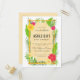 Este convite divertido apresenta um quadro de bambu com uma canvas alargada. Há folhas tropicais e flores coloridas, exóticas, espiando por trás. Para alterar os detalhes da parte, basta digitar o texto personalizado nas caixas modelo. Estes cartões postais são invertidos a uma cor rosa pálida. Este design é perfeito para rapazes e raparigas.