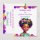 Cartão Postal De Convite Festa de aniversário personalizada moça afro-ameri
