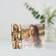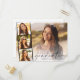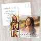 Anúncio de graduação elegante e cartão postal de convite de festas com a foto do formando sobreposta com uma faixa de três fotos quadradas menores e "Formando" em uma escrita moderna e seu nome e ano de aula em uma fotografia simples. No verso, adicione os detalhes da parte.
