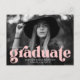Cartões postais de convite de festa de formatura em negrito com a foto horizontal do formando com "formando" em letras cor-de-rosa em negrito. Personalize os convites para festa de formatura de fotos adicionando o nome do formando, o ano de graduação e a escola. O convite de festa de formatura do cartão-postal reverte para exibir seu endereço de devolução e detalhes da parte.