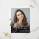 Comemore as conquistas do seu formando com este anúncio de graduação e formando o cartão postal do convite de festas. Sua foto favorita preenche o cartão com "Formando" colocado em cima em um roteiro elegante e branco; embaixo, adicione seu nome, escola e ano de aula. No verso, adicione uma fotografia adicional e os detalhes da festa de formatura.