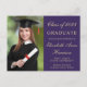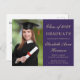 Anúncio do formandos roxo Elegante e cartão postal do convite de festas com uma foto do formando, seu nome e ano de aula em um roteiro de ouro leve e sua universidade, major e honors. Na parte traseira, adicione os detalhes da parte do formando.