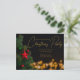 Este maravilhoso cartão postal de convite para festas de férias apresenta uma guião de ouro moderna sobre luzes cintilantes ao lado de uma festiva árvore de Natal que é decorada com ornamentos vermelhos e verdes. Personalize estes cartões postais elegantes para a sua reunião anual de Natal da família.